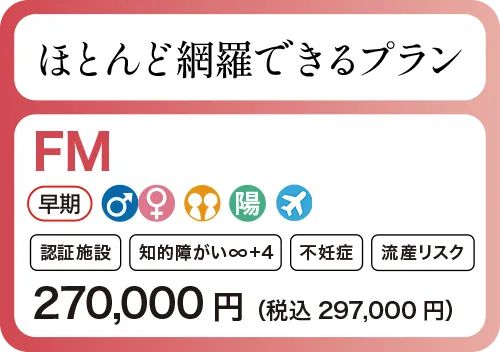 Q妊娠初期の方にはどのプランが適していますか?妊娠初期でも主要な染色体異常を網羅できる知的障害ワイドFがおすすめです。