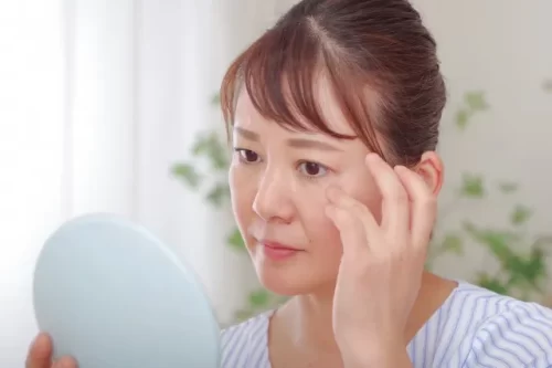 2. 鏡で肌を見る女性