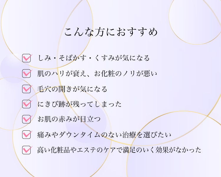 There is minimal disruption to daily life. You may experience slight warmth or redness from the day of treatment to the next day, but makeup can be applied immediately afterward. Additionally, your skin may be more sensitive to UV rays after the treatment, so please use sunscreen.