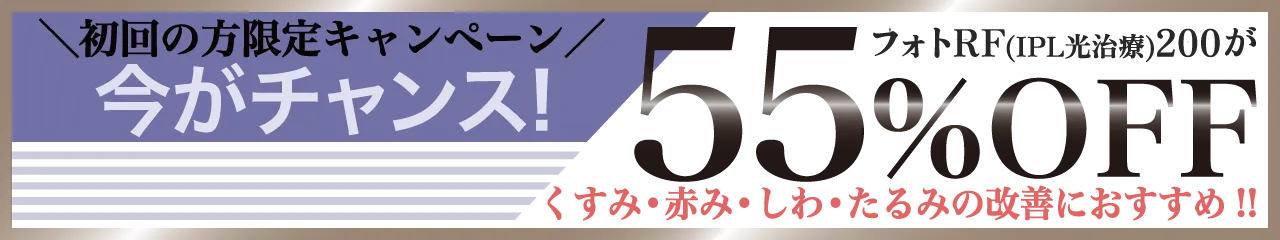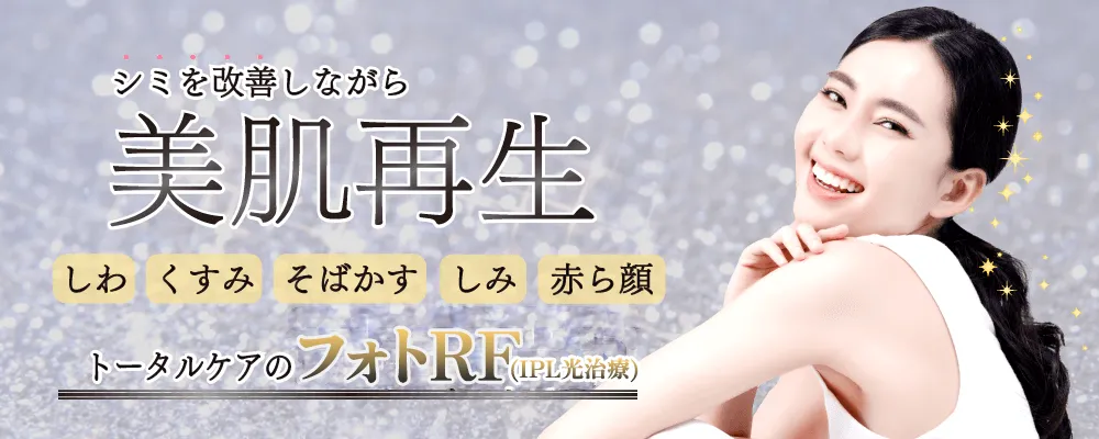 Photo RF (IPL Therapy) is safe even for those with sensitive skin. At our clinic, we perform test irradiation upon request and adjust the output according to your skin condition, ensuring your peace of mind.