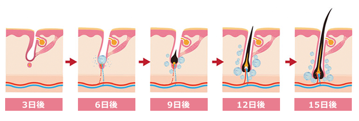 ヒアルロン酸ジェルは注入後、15日間に渡ってゆっくりと浸透していくため、毛包へ長期的に作用されます。