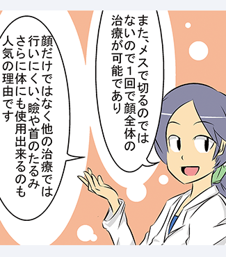 疼痛因体质而异,但诊所提供口服药物供选择。 治疗过程中会调整热冷却的程度,因此您可以放心。