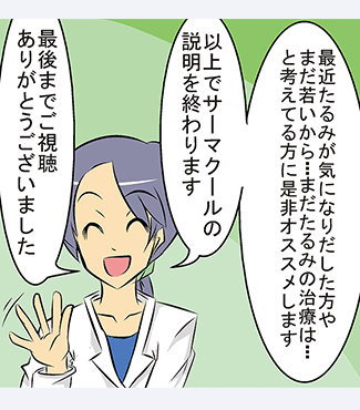 由于两者各有优势,我们考虑今后在本诊所引进,但在向多家公司订购机器并试用后,我们认为 Thermacool 仍更受员工好评,也更容易让患者放心接受,如果是额外的局部提升,我们更倾向于使用线程治疗或 我们还认为,通过在锚定点注射透明质酸,可以在即刻效果的基础上增加同样的优质效果,因此我们计划在进一步改进的模型问世后考虑引入 HIFU。