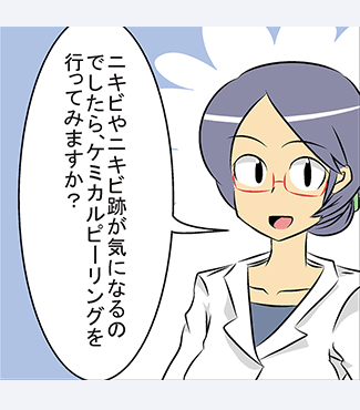 ケミカルピーリングとはグリコール酸などの薬品を使って、角質や表皮などをはがす治療のことです。