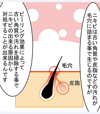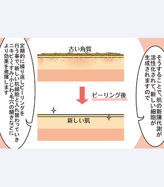 角質層がはがれることにより、毛穴のつまりなどが改善されるとともに、新しい皮膚の再生が促されます。