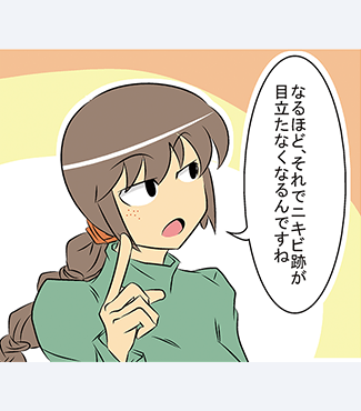 毛穴づまりの解消、皮脂分泌の正常化により、にきびの改善をします。 凹凸をなめらかにしてにきび跡も目立たなくなります。