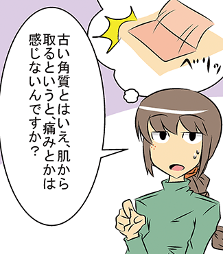 “皮膚をはがす”というと怖い感じがありますが、皮膚の表面の角層か血管の存在しない表皮の一部を剥離するため、痛み、出血など怖い副作用はありません。
