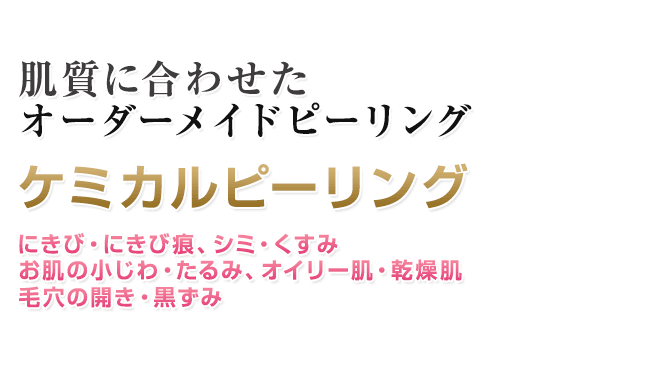 しかし、無理に強いピーリングを行うとお肌表面のダメージや色素沈着をおこしてしまう可能性があります。ケミカルピーリングは医療行為として医療機関でのみ行うよう厚生省より通達をされています。