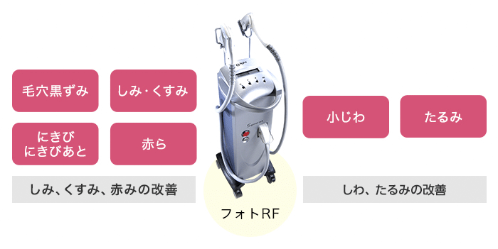 Photo RF has a temperature control and independent cooling system that prevents burns caused by the treatment and was approved by the U.S. FDA (Food and Drug Administration), the equivalent of Japan’s Ministry of Health, Labor and Welfare, in 2002.