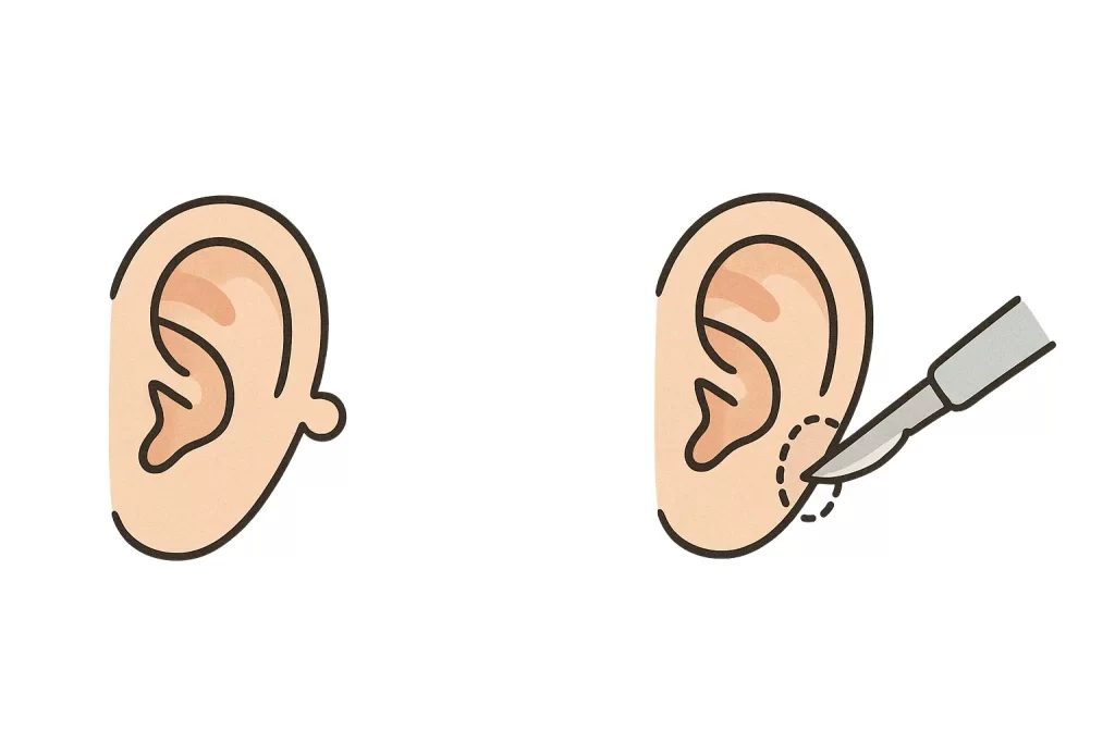 副耳切除術は、先天的に耳の周囲にできる小さな突起を取り除くシンプルな手術です。