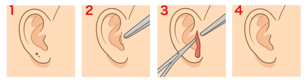 - 時に耳軟骨に接しているため、一部軟骨も切除することがある。