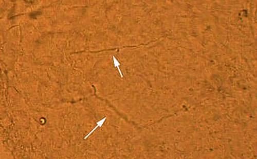 診断は皮膚の水虫と同様、真菌検鏡用いて、柔らかくなっている爪の一部をとって顕微鏡で調べます。