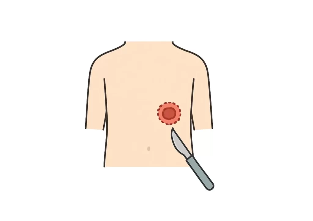 - 服で隠れる部位なので、整容面の配慮よりも「安全に完全摘出」が優先される