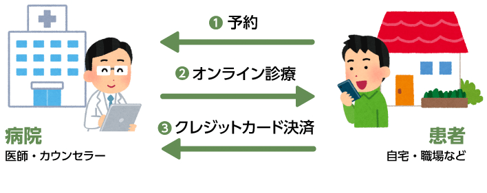 オンライン診療とは「クリニックから離れた場所に住んでいる」「何らかの事情で通院が困難である」など生活環境等の理由で医療機関に直接来院できない方々のために、ビデオチャットなどを通じて医師が診察を行うことを意味します。