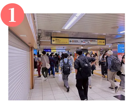突き当たりまで行き、C2またはC3出口へ向かってください。