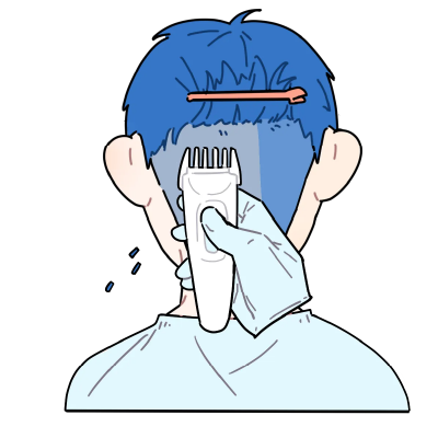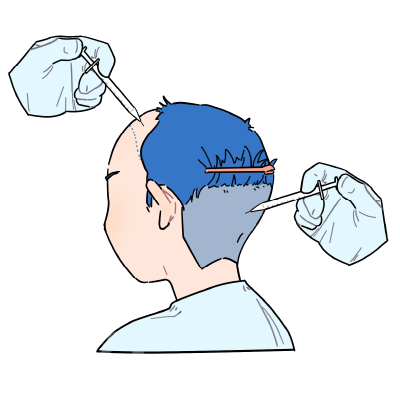 うとうとした状態になります。グラフト(株)を採取する刈り上げた後頭部に、