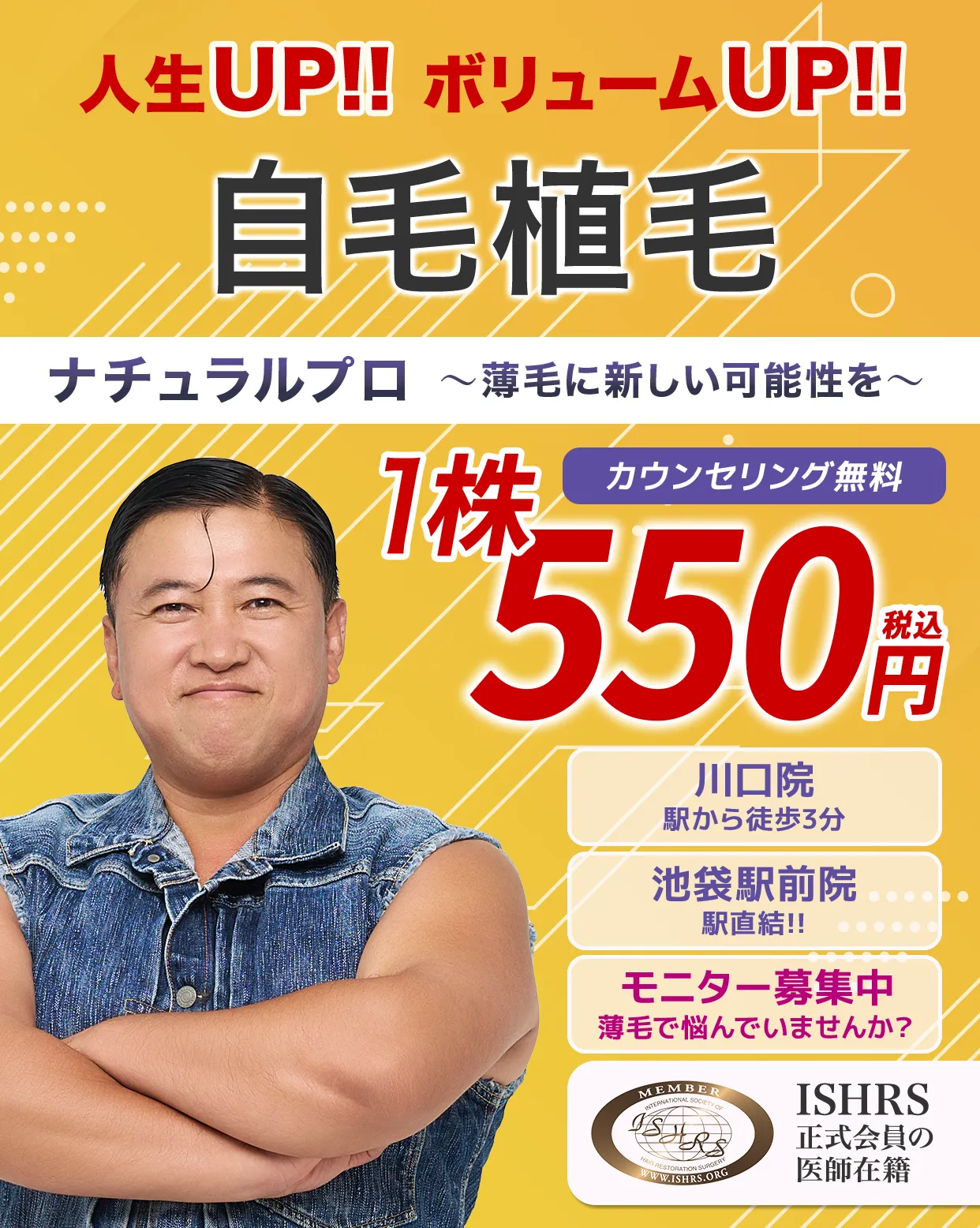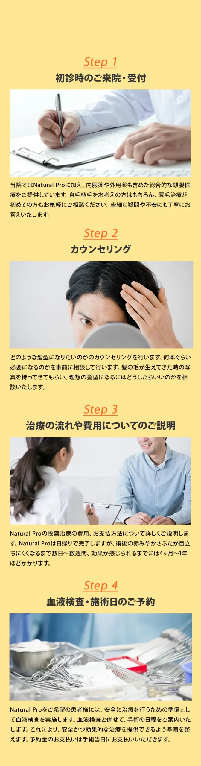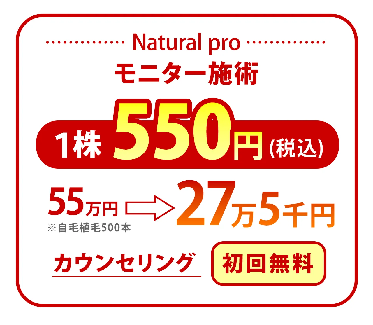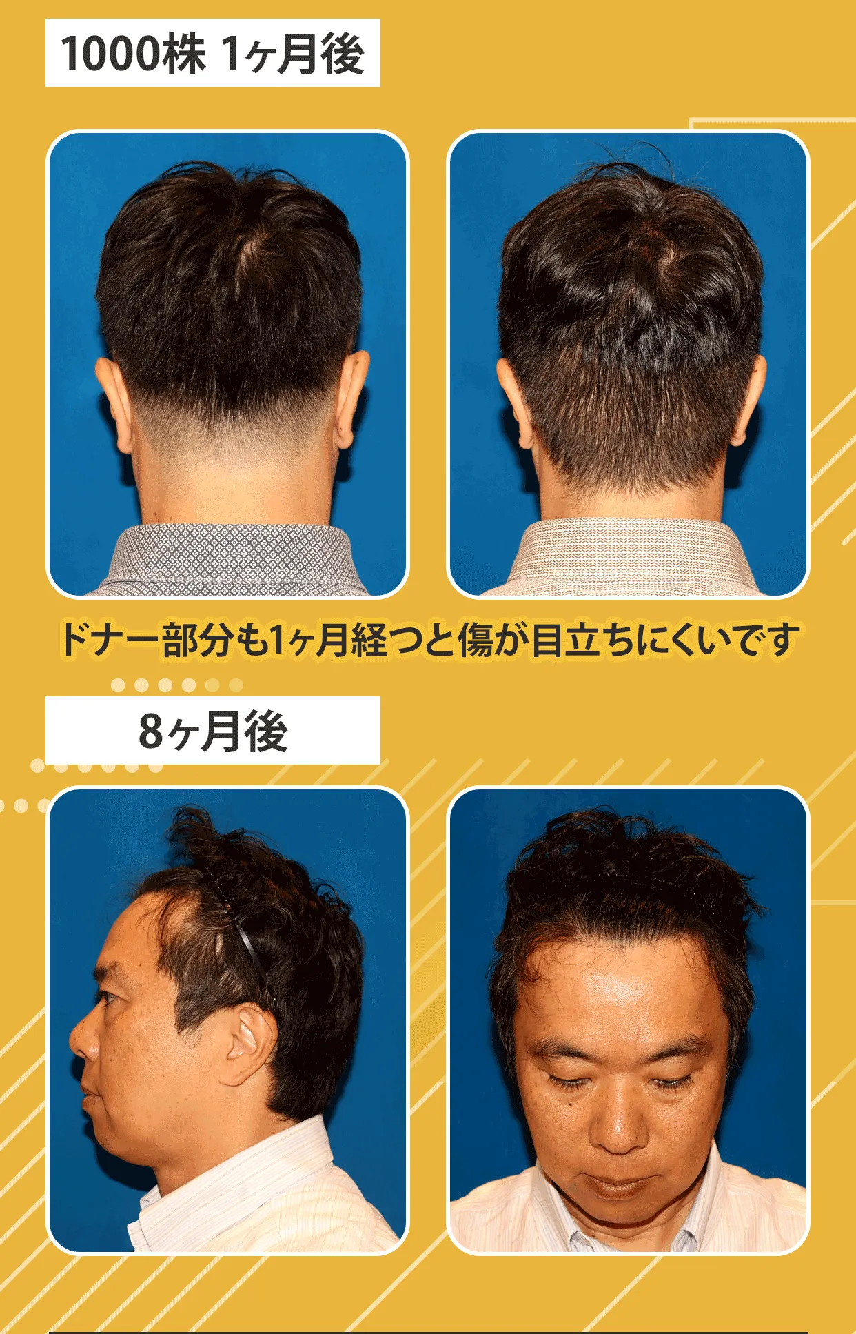 初期脱毛(ショックロス):術後1~2ヶ月の間に移植した周辺が一時的に脱毛することがあります。