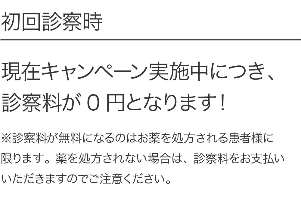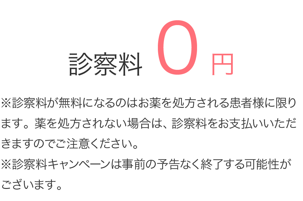 ※診察料が無料になるのはお薬を処方される患者様に限ります。薬を処方されない場合は、診察料をお支払いいただきますのでご注意ください。