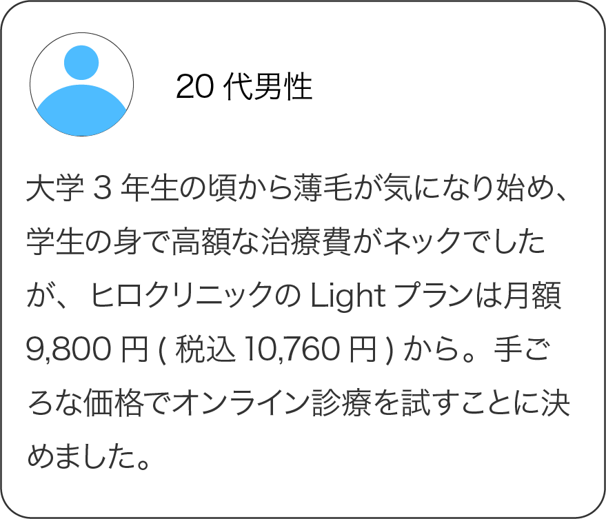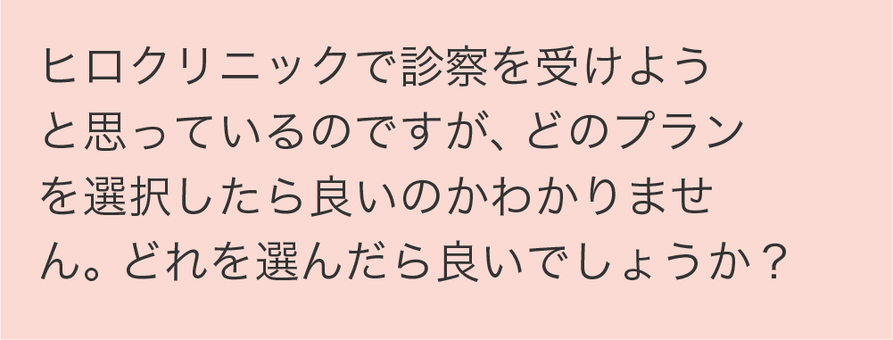 プランはご自身の頭皮の状況、今後どれだけ発毛されたいか、また医師の診察を踏まえてご判断いただくことをおすすめしております。