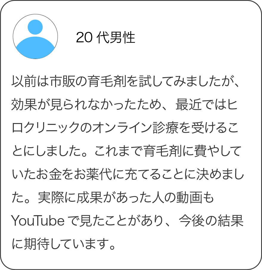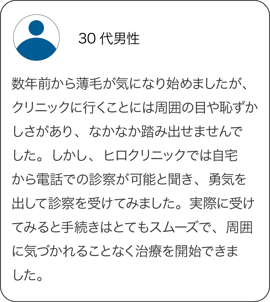 急激な治療の中止は、反動で脱毛を引き起こすことがしばしばあります。オンライン診療で医師に相談しながら徐々にお薬を減らしていくことをおすすめします。