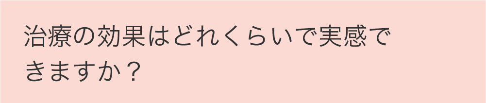 個人差はございますがお薬F・お薬Dの場合は、1〜2ヶ月程度で実感できる方が多いです。お薬Mの場合は、早い方で3ヶ月程度、一般的には半年程度で、治療の効果をはっきりと実感することができる方が多いです。