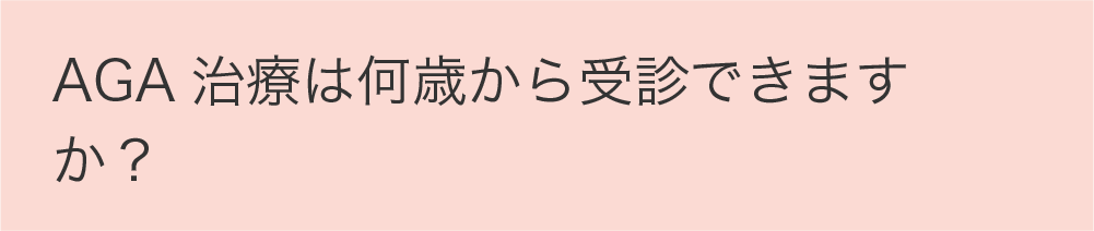 当院では、18歳以上の方は問題なく受診が可能です。15歳以上18歳未満の方は金銭的な問題もございますので、保護者様の同席、または保護者様にお電話での確認が取れる場合は受診可能です。15歳未満の方は基本的に受診をお断りしておりますが、もしどうしても受診をご希望されるようであれば、一度当クリニックまでお問い合わせください。