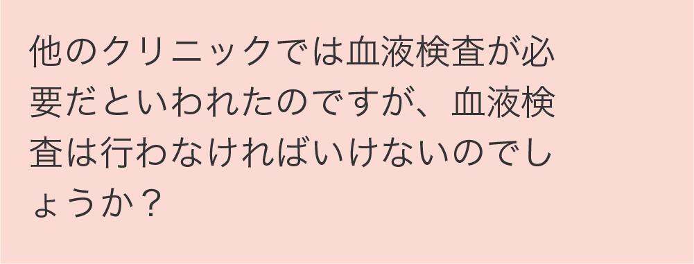 AGAの治療を開始するにあたり、血液検査は必須ではありません。ただ、AGA治療のためだけでなく、年に1回程度の定期的な健康診断の受診をおすすめいたします。