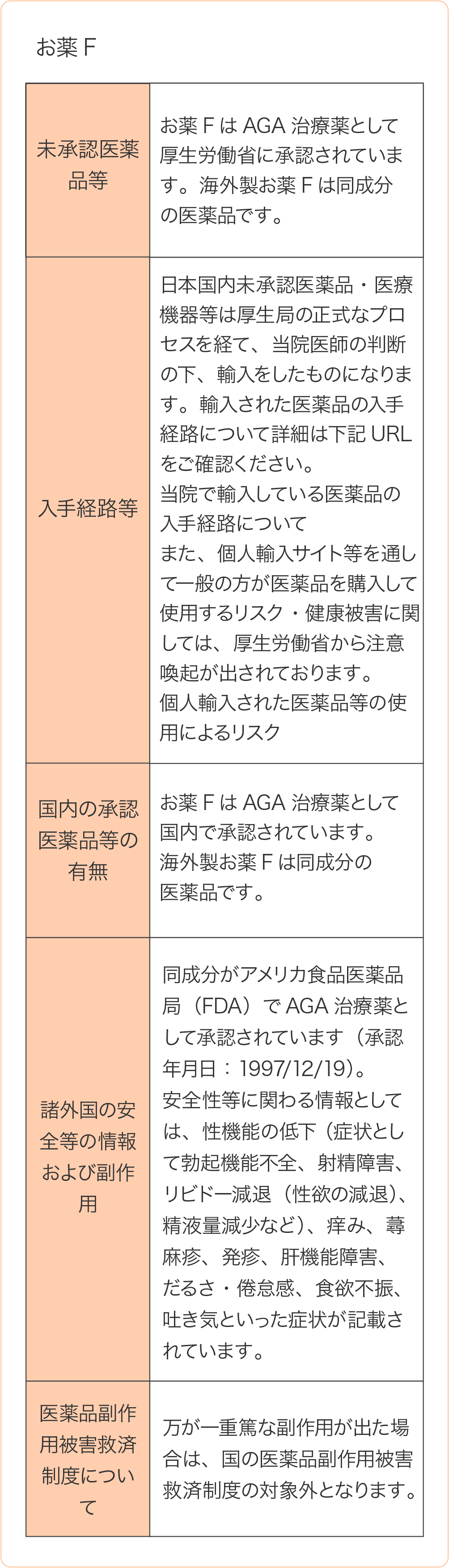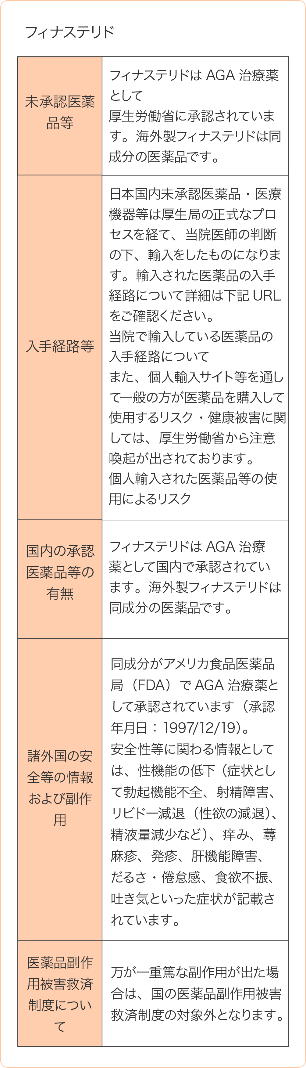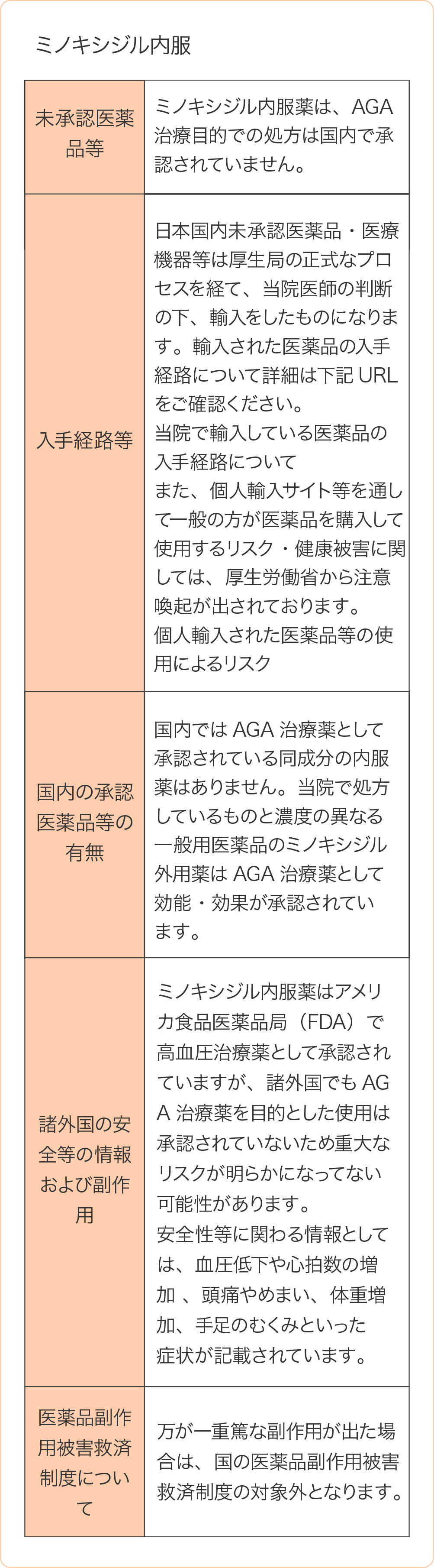はい、現在日本ではお薬M内服薬は承認されておりません。しかし米国を含む海外諸国では医薬品として認可され、処方薬として利用されております。当院では、AGA薄毛治療の専門知識と経験のある医師が処方し、副作用の有無を確認しながら継続していくのであれば、お薬M内服薬はAGA治療に有効かつ強力な治療薬だと考え、処方をご希望の方には医師の判断のもと処方させていただいております。もし内服薬の利用に不安がある方は、外用薬も処方可能ですので、当院の医師にご相談ください。