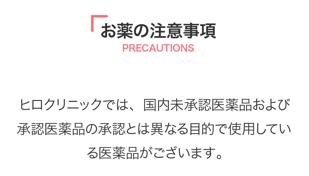 ヒロクリニックでは患者様のご希望に柔軟にこたえるため、海外製と国内後発品(ジェネリック)をご準備しています。お値段が高くても国内後発品にこだわりたい方は国内後発品を、価格をできるだけ安く抑えたい方は海外製をご選択いただいております。