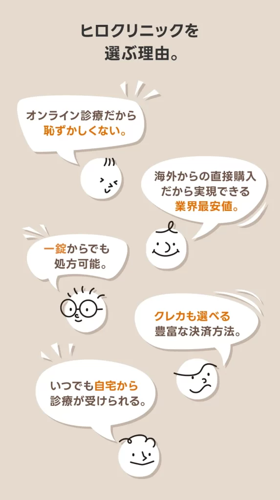 ・診察結果に基づき、処方は医師が医学的に適切と判断した範囲で行います。 ・処方薬は薬機法に基づき、対面診療と同等の基準で実施され、麻薬・向精神薬等の処方は行いません。 |
