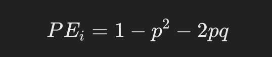 1つの遺伝子座での排除確率の計算式は以下のようになります: