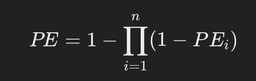 複数の遺伝子座に基づいて排除確率を求める際は、それぞれのPEを組み合わせます。たとえば、20個の遺伝子座があり、それぞれの排除確率(PE)が計算されている場合、全体のPEはすべてのPEを掛け合わせる形で求められます。