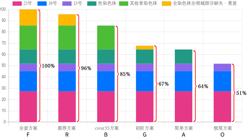 上面的条形图是孕妇在Hiro诊所NIPT中经常选择的检查方案「检查覆盖率」 的数值。