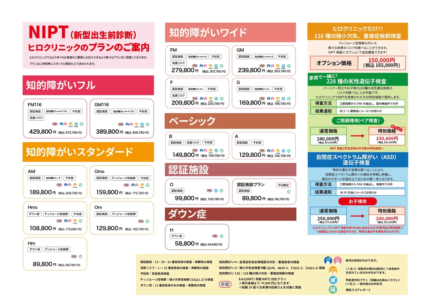 ヒロクリニックのNIPTは、胎児の常染色体および性染色体の数の異常の他、部分的な欠失・重複疾患、微小欠失症候群といった染色体の部分的な構造異...