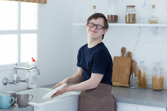ダウン症候群の症例のうち、約95%は21トリソミーが原因といわれています。そのため、ダウン症候群の人は、通常の46本よりも多い47本の染色体をもっています。余分な染色体が父親から引き継がれることはほとんどありません。また、母親の年齢が上がるとともに、発症のリスクが高まります。