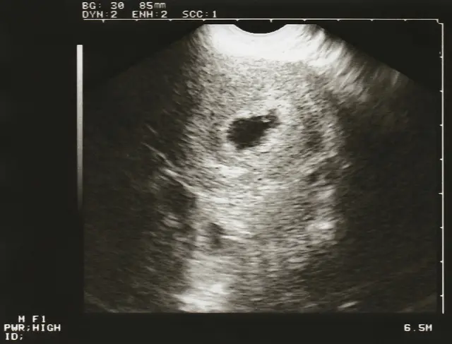 妊娠5週のエコー 胎嚢が確認されます。