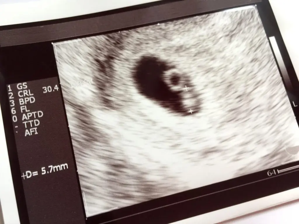 妊娠6週のエコー 胎児の体長は5.7mmです。
