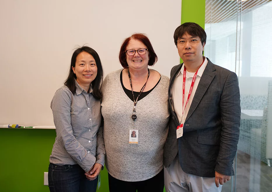 写真3枚目は岡とイルミナ社のマネージャー。写真4枚目は遺伝カウンセラーのスタッフの方々と、それぞれミーティング後に撮影した写真になります。