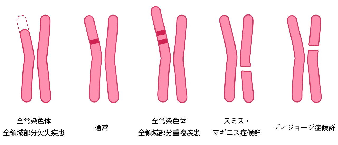 | 両者の違い | 微小欠失重複(このページで説明) | 部分欠失重複(別のページで説明) |