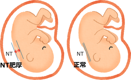 This test combines the measurement of NT (Nuchal Translucency) by ultrasonography and the measurement of serum markers (PAPP-A, hCG) by blood sampling, and is called a combined test because the two tests are combined.