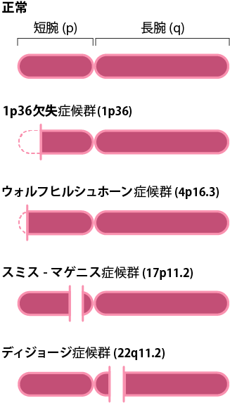 | 罹患部位 | 22q11.2 | 1p36 | 17p11.2 | 4p16.3 |