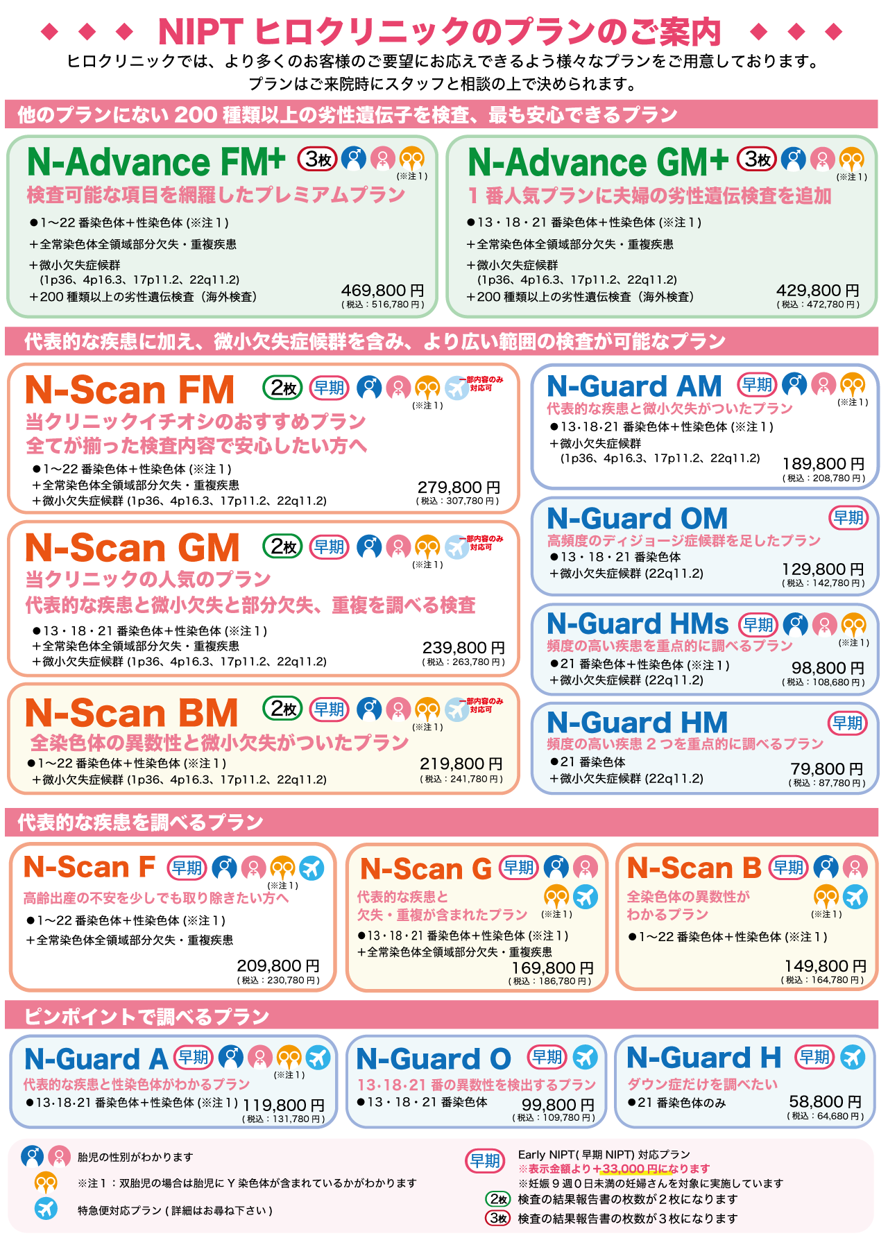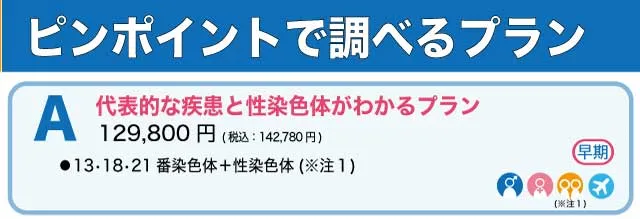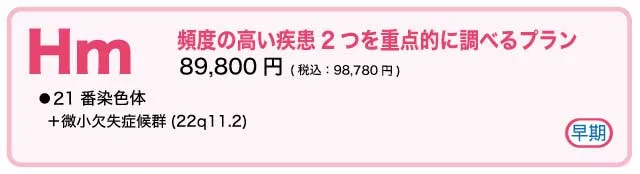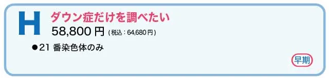Q費用を抑えながら必要な検査を受けたい場合、どのプランが適していますか?Hがおすすめです。このプランは21番染色体に特化しており、費用が抑えられています。