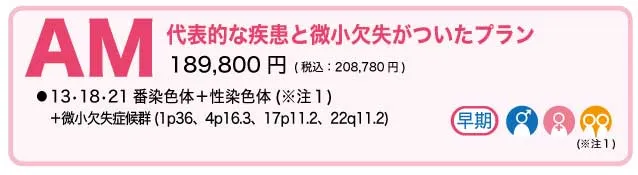 Q微小欠失症候群を調べたい場合、どのプランがおすすめですか?G116またはAMがおすすめです。これらのプランでは4種類の微小欠失症候群を調べることが可能です。