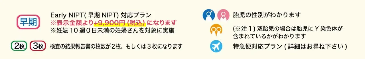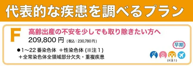 Q妊娠初期の方にはどのプランが適していますか?妊娠初期でも主要な染色体異常を網羅できるFプランがおすすめです。