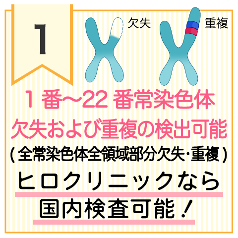 Q微小欠失症候群に特化したプランはありますか?はい、G116やAMでは微小欠失症候群に特化した検査が可能です。