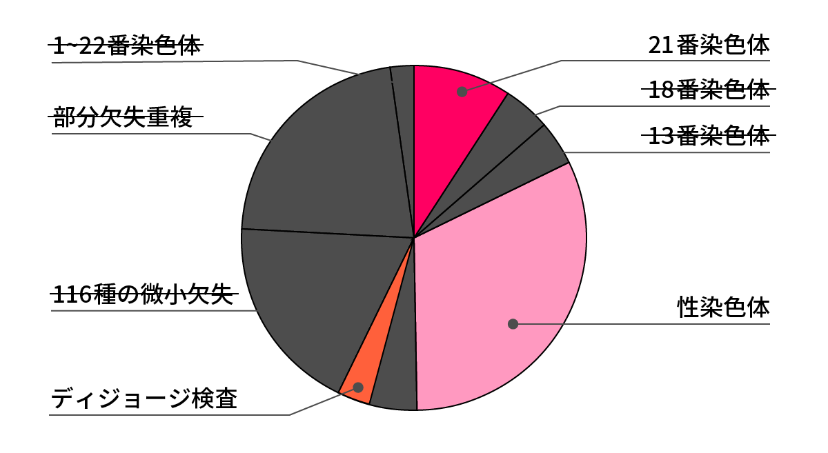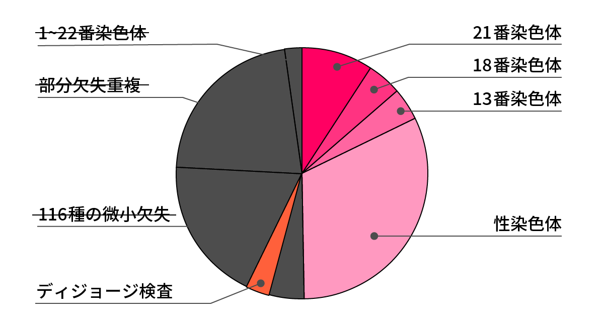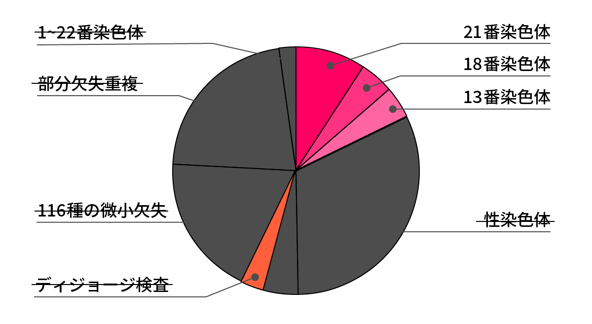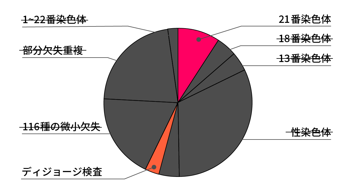 知的障害スタンダードは、検査項目を必要最小限に絞ることで、費用を抑えながらも、出生前に確認しておきたい代表的な染色体異常を効率的に調べることができるシンプルで実用的なプランです。特に、ダウン症(21番染色体異常)や、ダウン症に次いで多いとされる22q11.2微小欠失症候群(ディジョージ症候群)など、妊娠中に注意したい疾患を対象としています。検査内容や範囲に応じて複数のサブプランが用意されており、ご希望やご予算に合わせて最適なプランを選べる点も大きな特徴です。出生前の不安を少しでも軽減したい方におすすめのプランとなっています。
