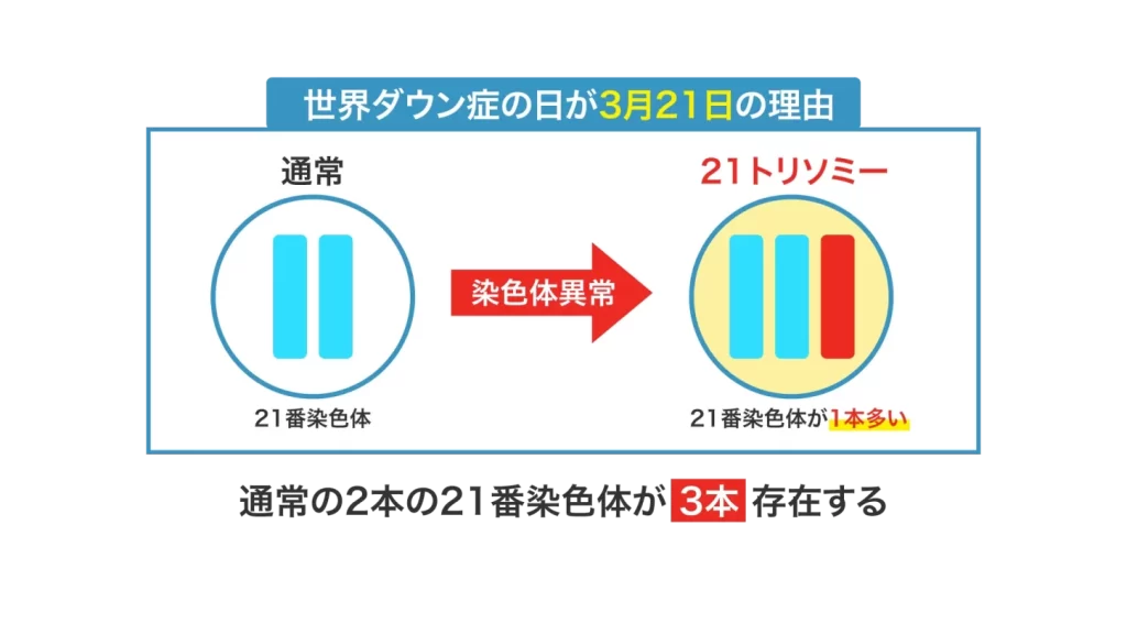 動画ではダウン症について正確な情報が提供されています。Web検索結果によれば、ダウン症(21トリソミー)は、21番染色体が通常の2本ではなく3本存在することによって起こる先天性の染色体異常です。