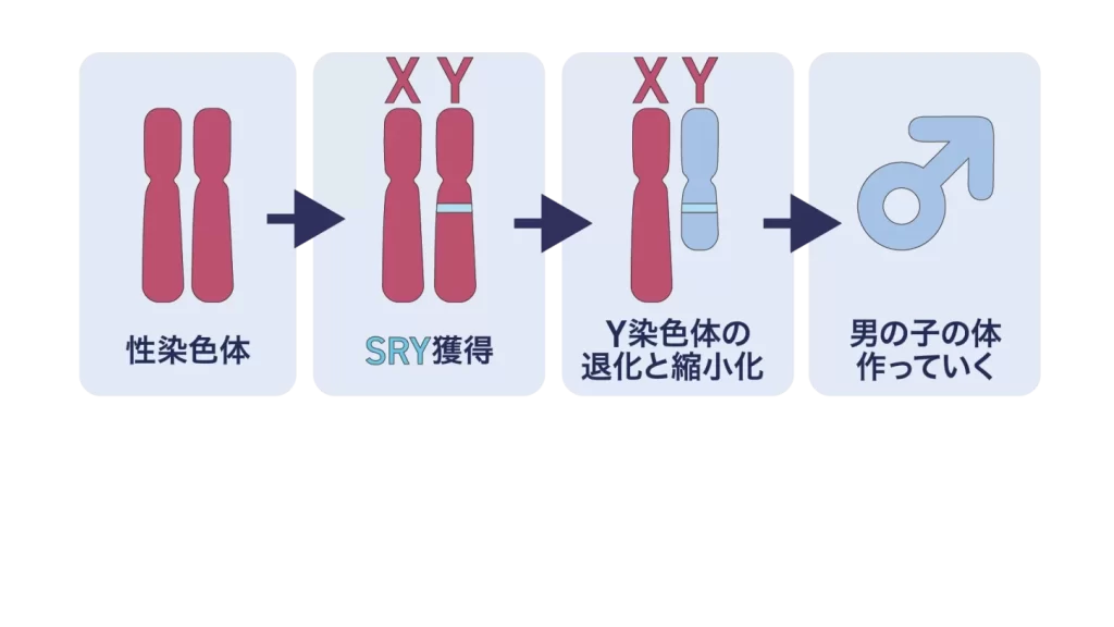 ここから「男の子」になるためには、ある特別なスイッチが必要です。それが、Y染色体に乗っている**「SRY遺伝子(Sex-determining Region on the Y chromosome)」**です。