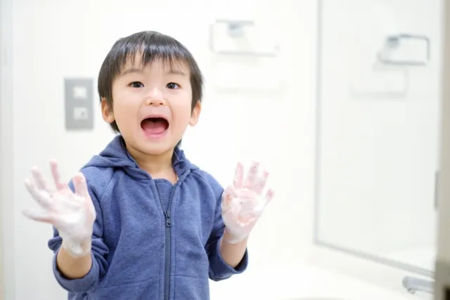 手洗いは、石けんと水で20秒以上かけてしっかり行い、手のひらや指の間、爪の間まで丁寧に洗いましょう。アルコール消毒も手洗いの代替として有効です。